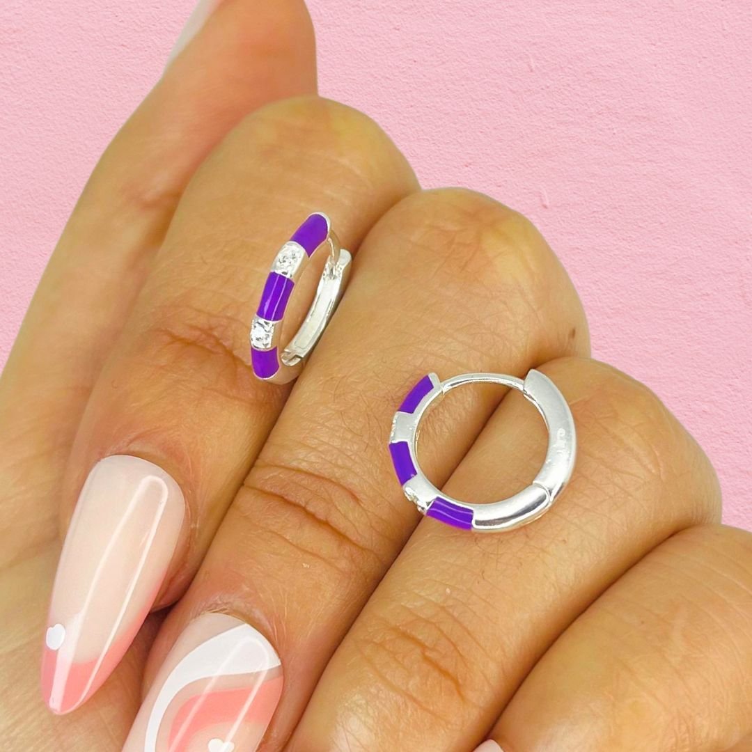 Aros Huggies con esmaltado lila cubic Plata Italiana