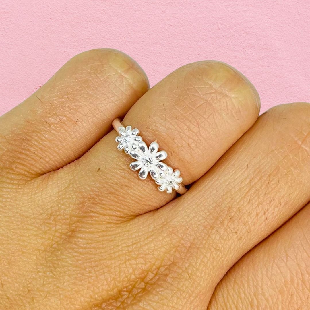 Anillo Margaritas con cubic blanco Plata Italiana