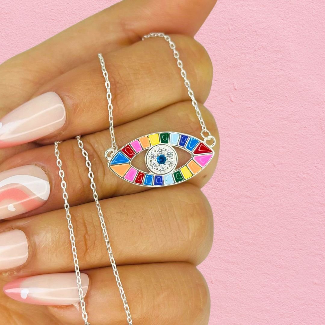Conjunto Cadena con dije Ojito Multicolor Plata 925