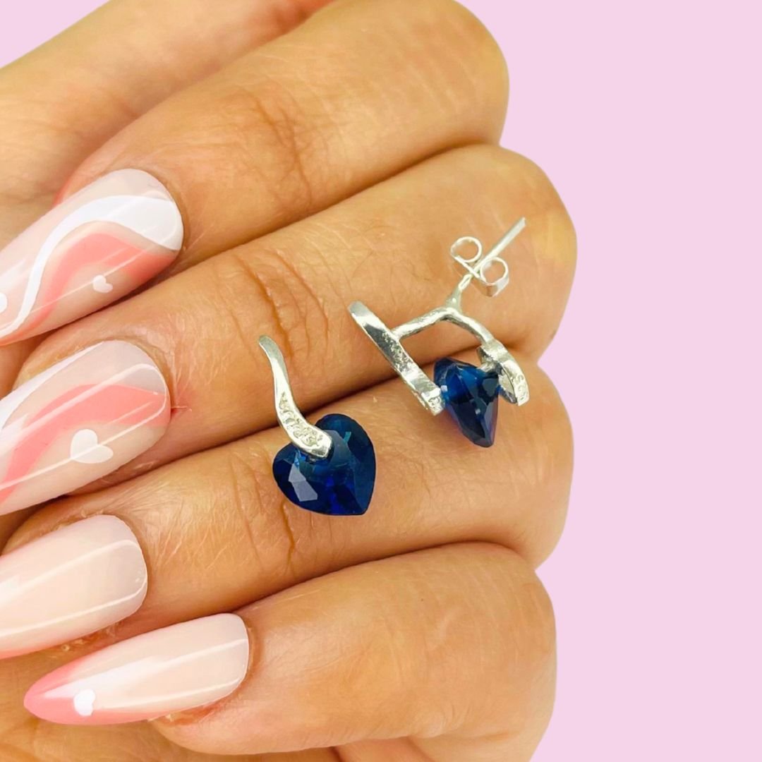 Aros Corazon colgante cubic Azul Plata 925