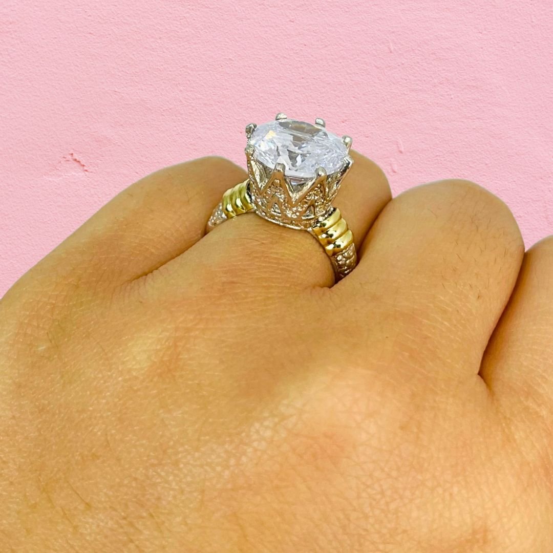 Anillo corona unisex con cubic blanco Plata 925 y Oro