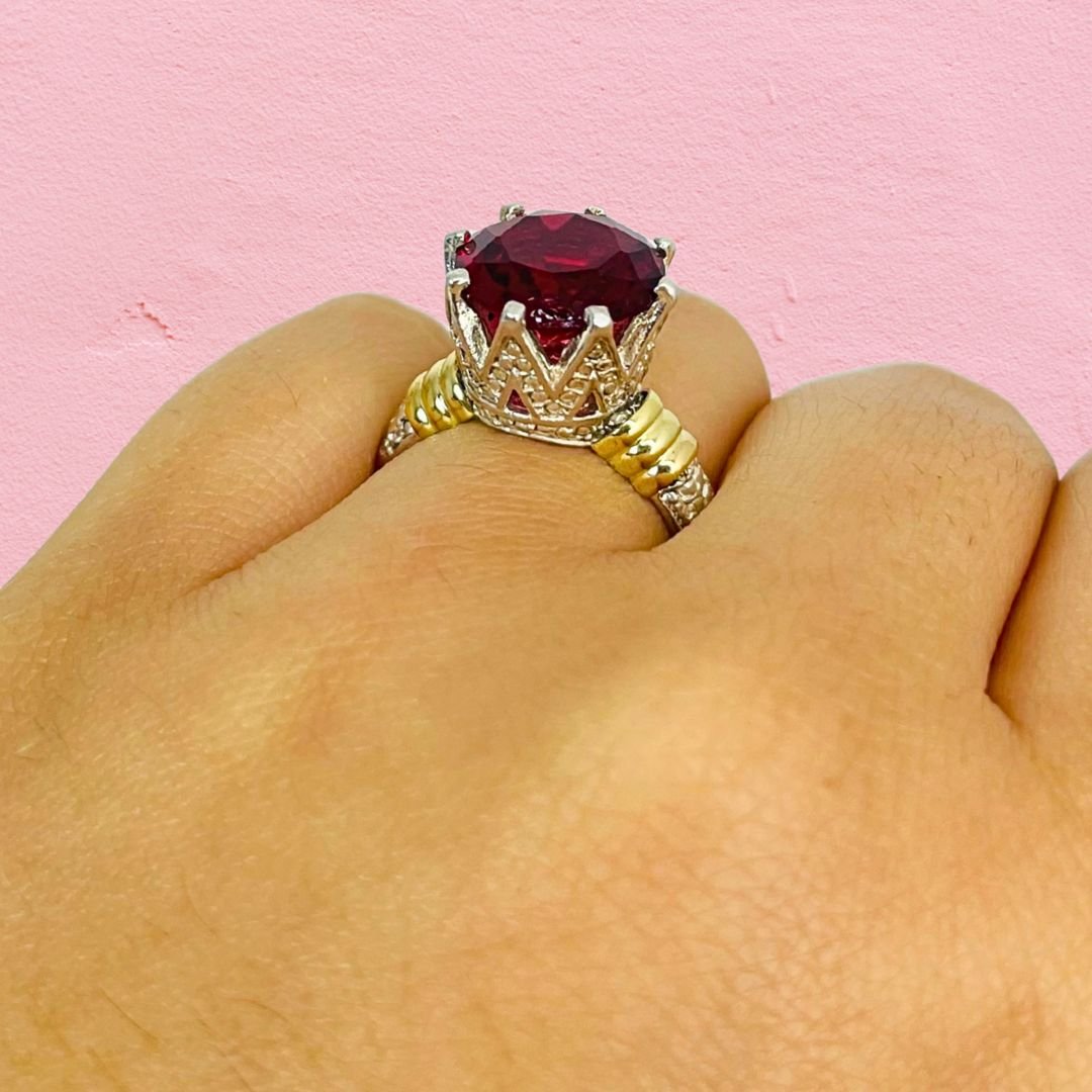 Anillo corona unisex con cubic Rojo Plata 925 y Oro