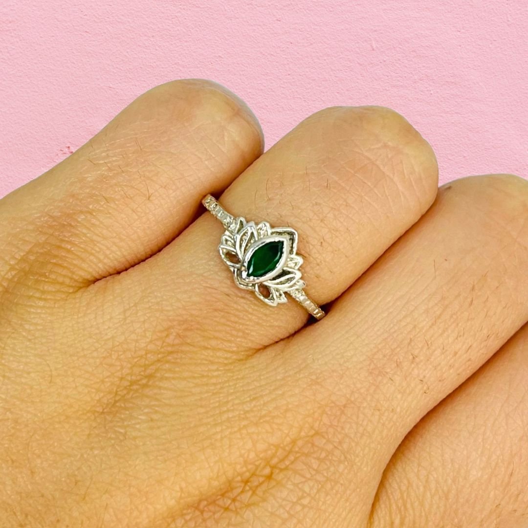 Artículo: AP 733-4Anillo Flor de loto con cubic Verde Plata 925