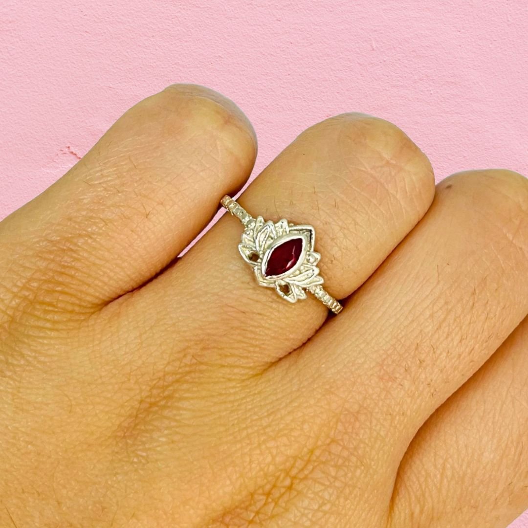 Anillo Flor de loto con cubic Rojo Plata 925
