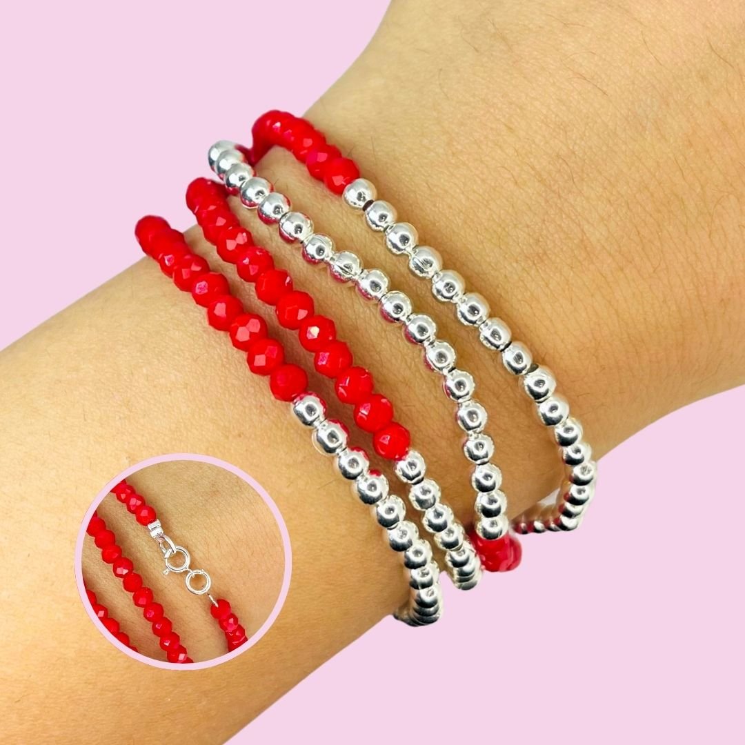 Pulsera Cristales Roja y bolita enchapadas de Plata 925