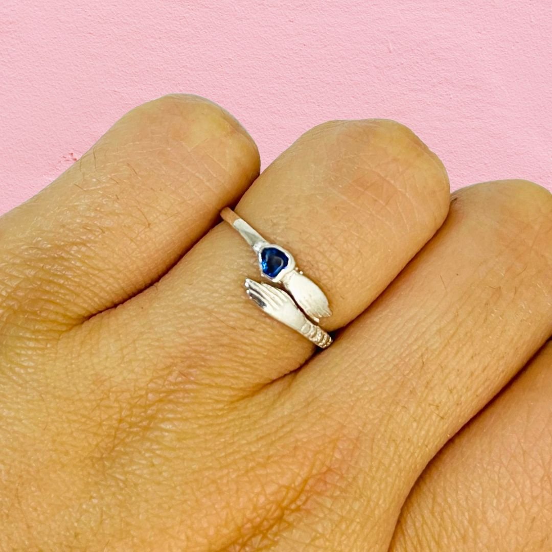 Anillo Abrazo con cubic corazon Azul Plata 925