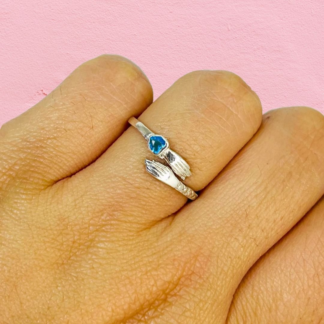 Anillo Abrazo con cubic corazon Aguamarina Plata 925