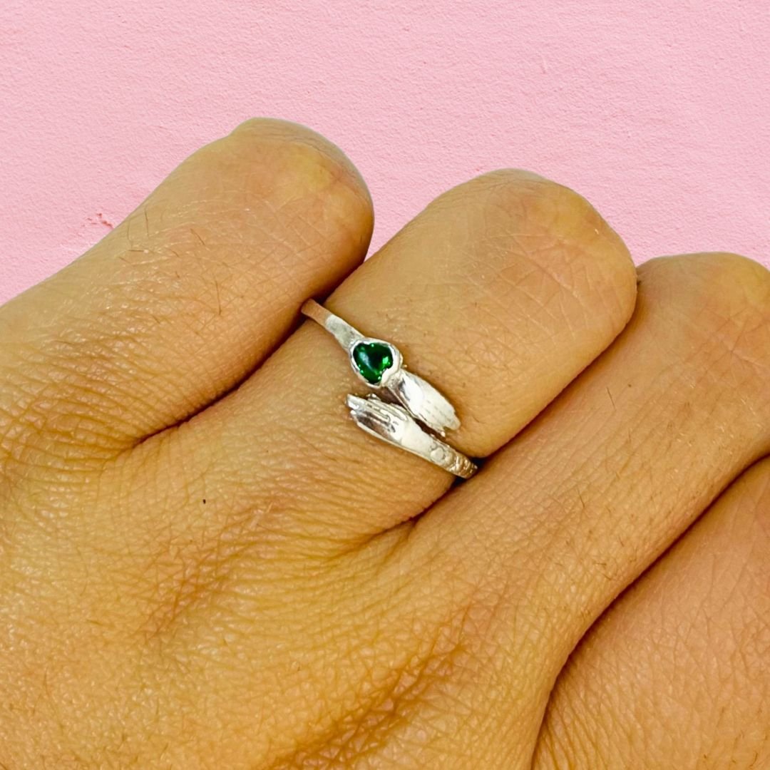 Anillo Abrazo con cubic corazon Verde Plata 925
