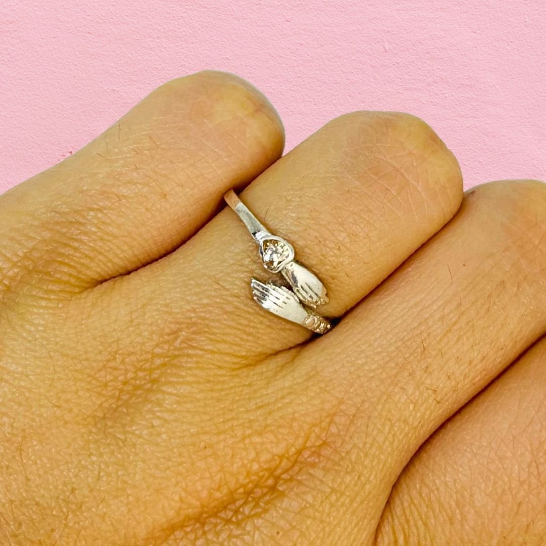 Anillo Abrazo con cubic corazon Ambar Plata 925
