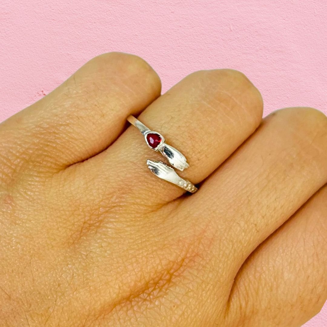 Anillo Abrazo con cubic corazon Rojo Plata 925