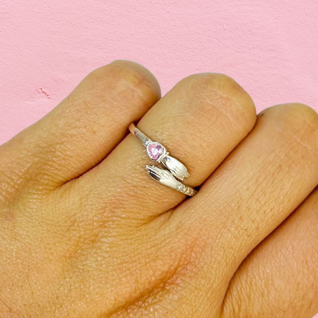 Anillo Abrazo con cubic corazon Rosa Plata 925