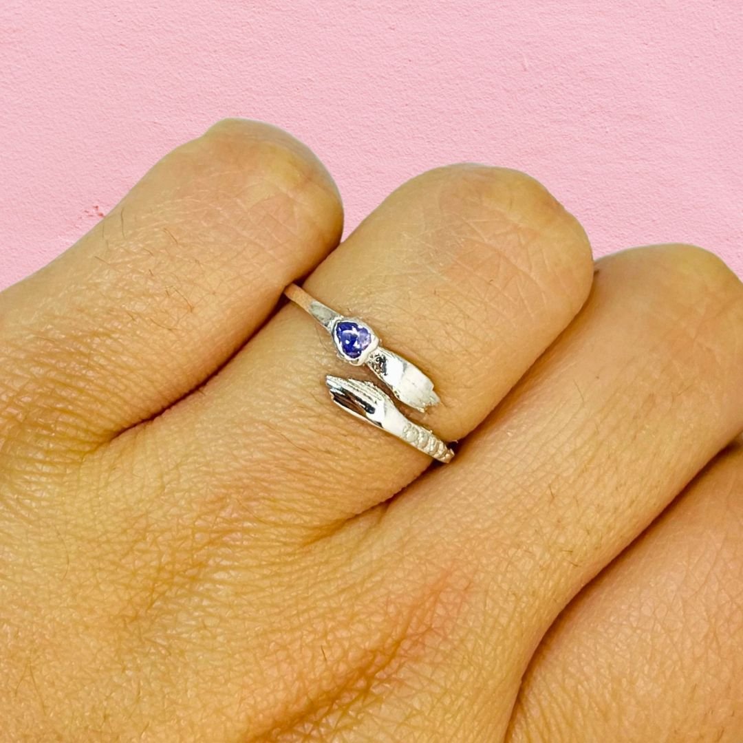 Anillo Abrazo con cubic corazon Lila Plata 925