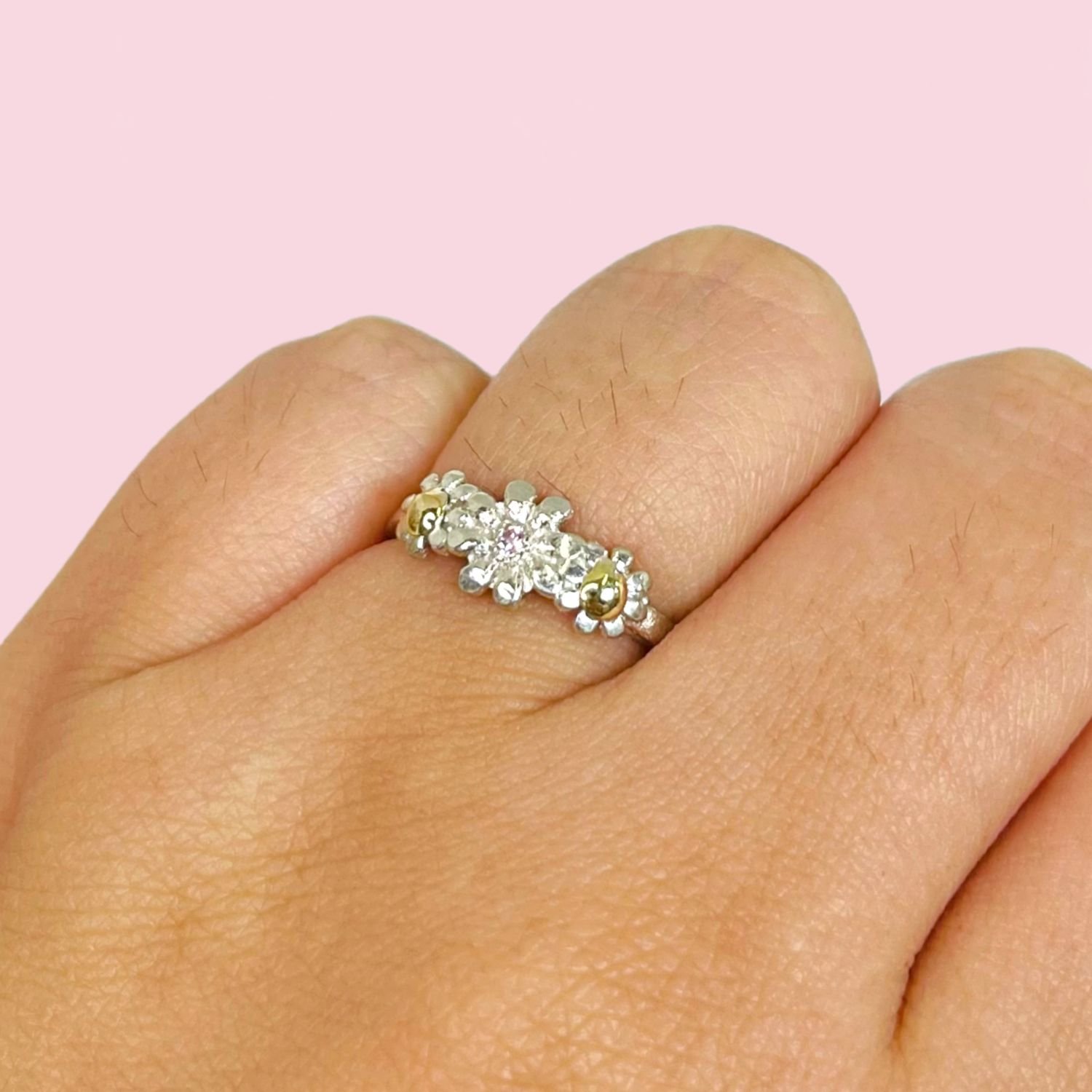 Anillo Margarita trio con cubic Rosa Plata 925 y Oro