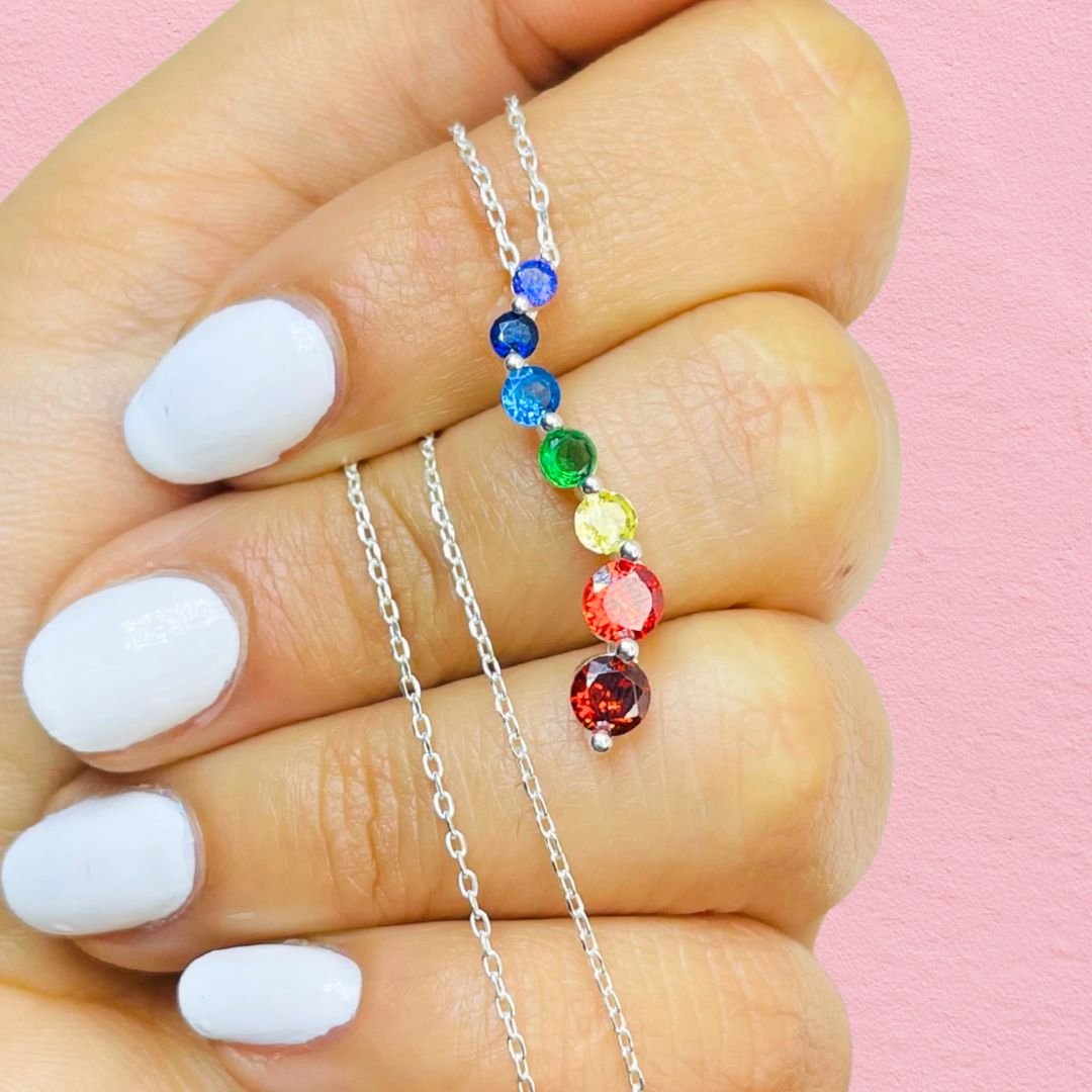Conjunto cuernito de arcoiris con cubic Plata 925