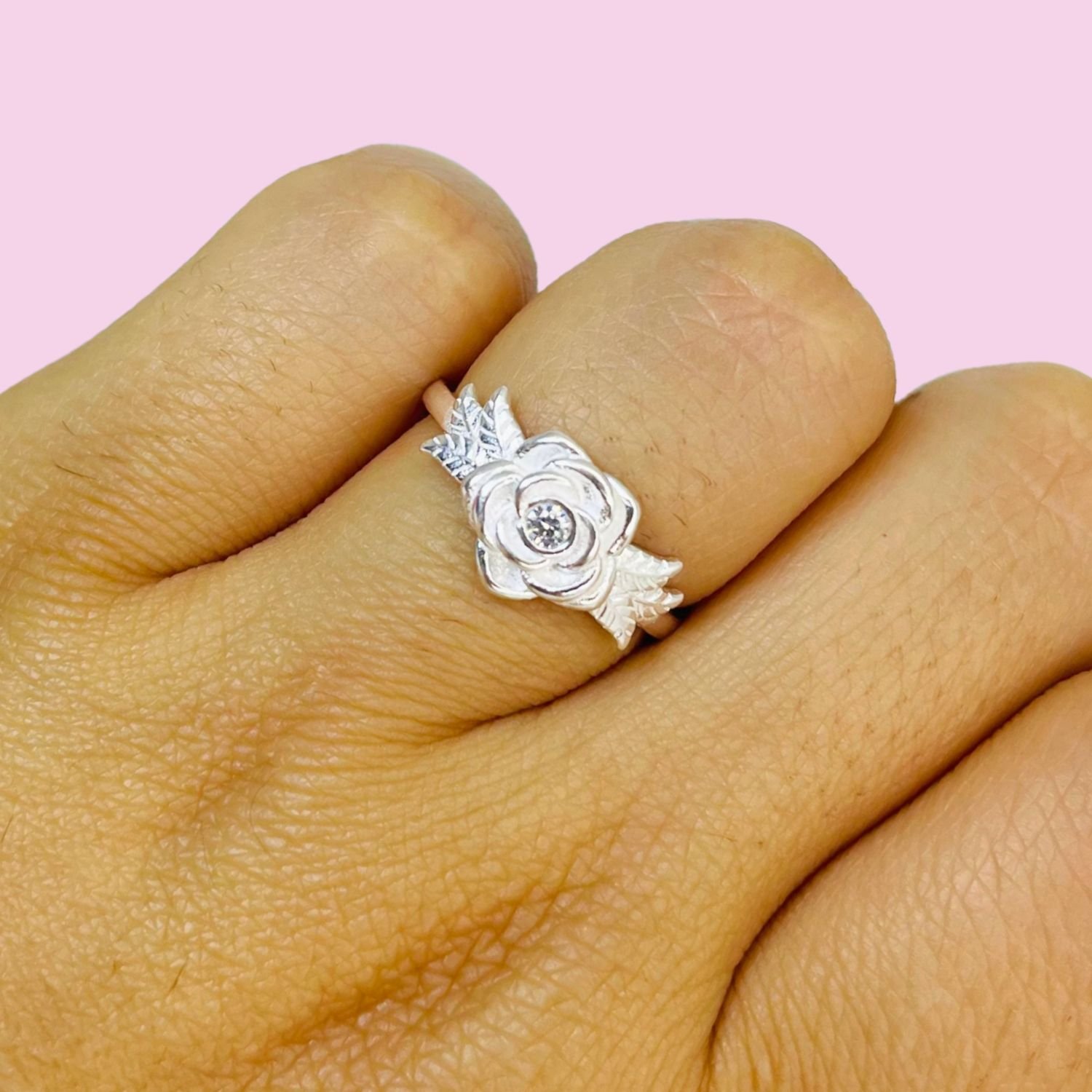 Anillo Rosa con cubic blanco Plata Italiana