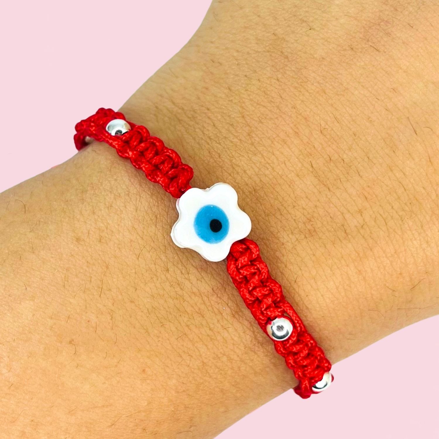 Pulsera Hilo Rojo con dije flor ojo Plata 925