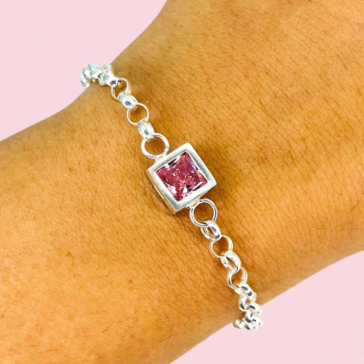 Pulsera rolo con Susanita Cuadrado rosa plata 925