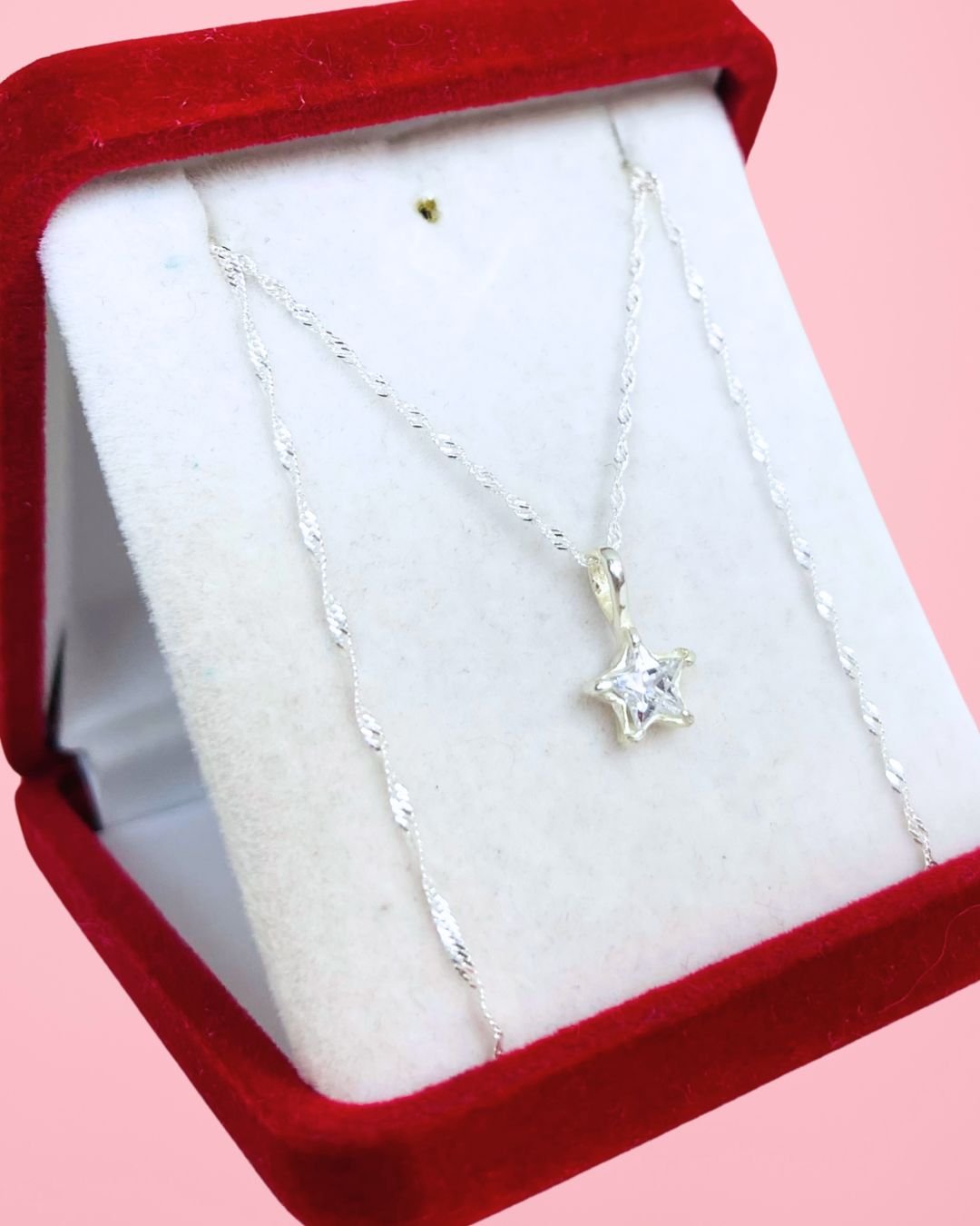 Artículo: Kit 390Conjunto Cadena singapur y Dije Estrella Blanco Plata 925