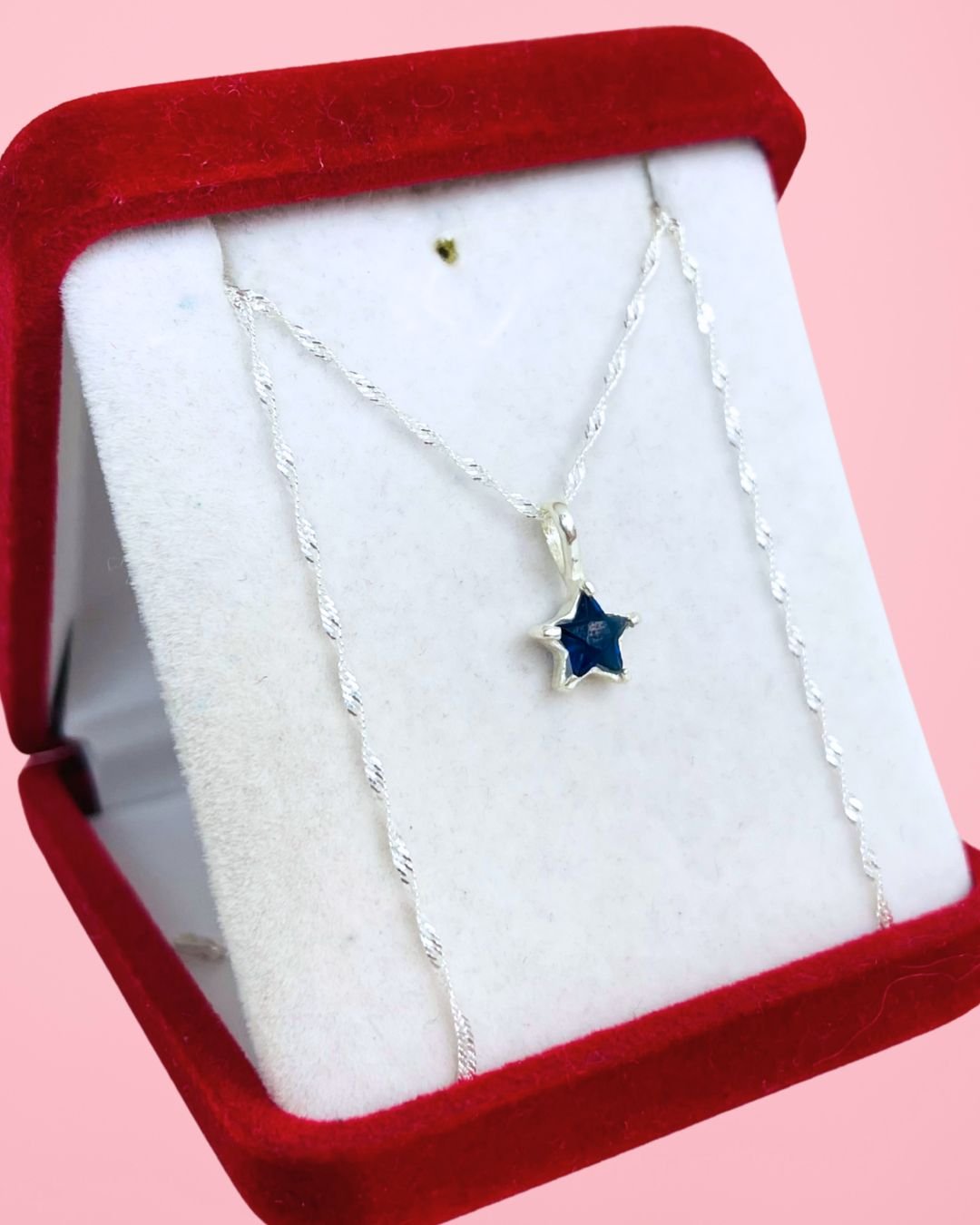 Conjunto Cadena singapur y Dije Estrella Zafiro Plata 925
