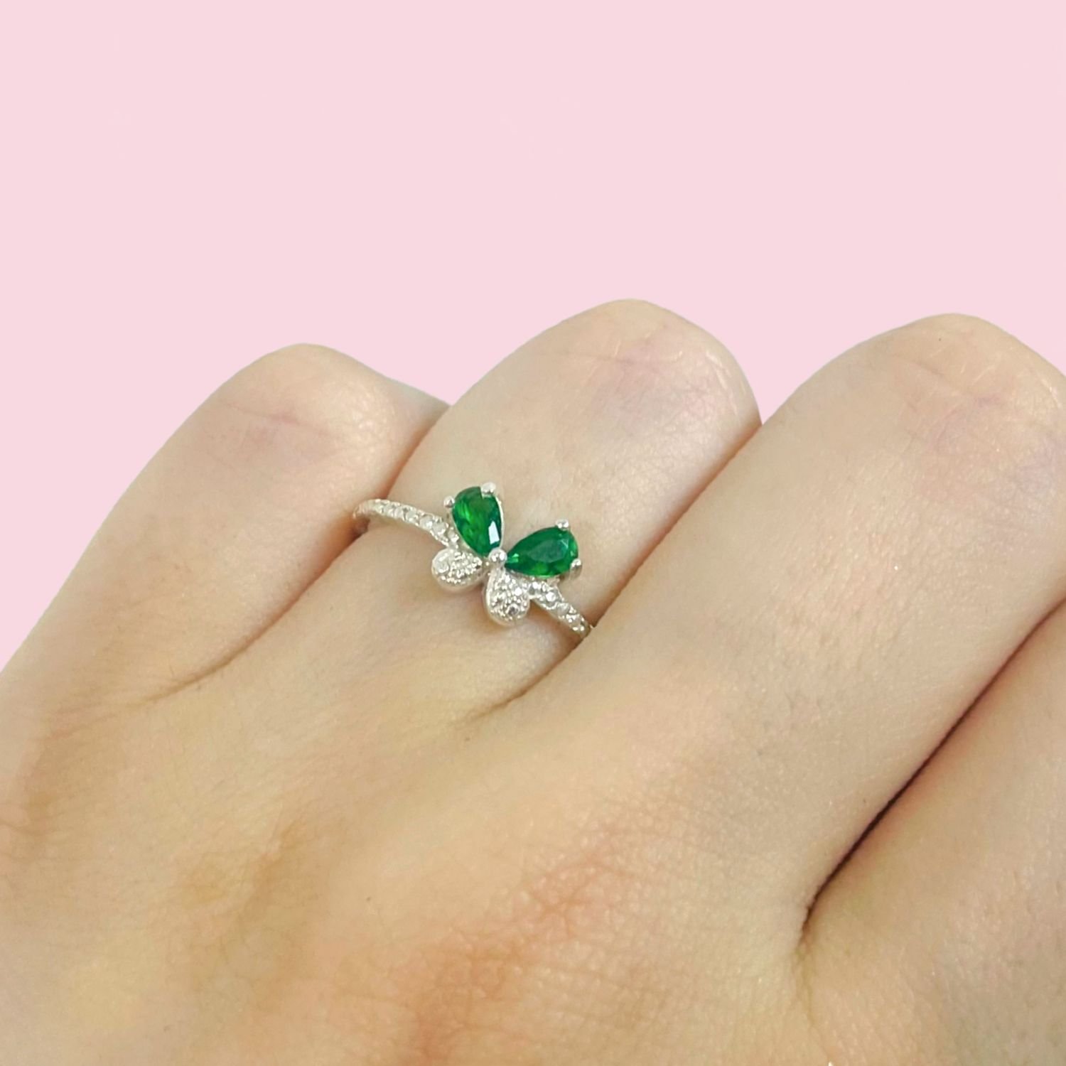 Anillo Mini Mariposa Esmeralda Plata 925