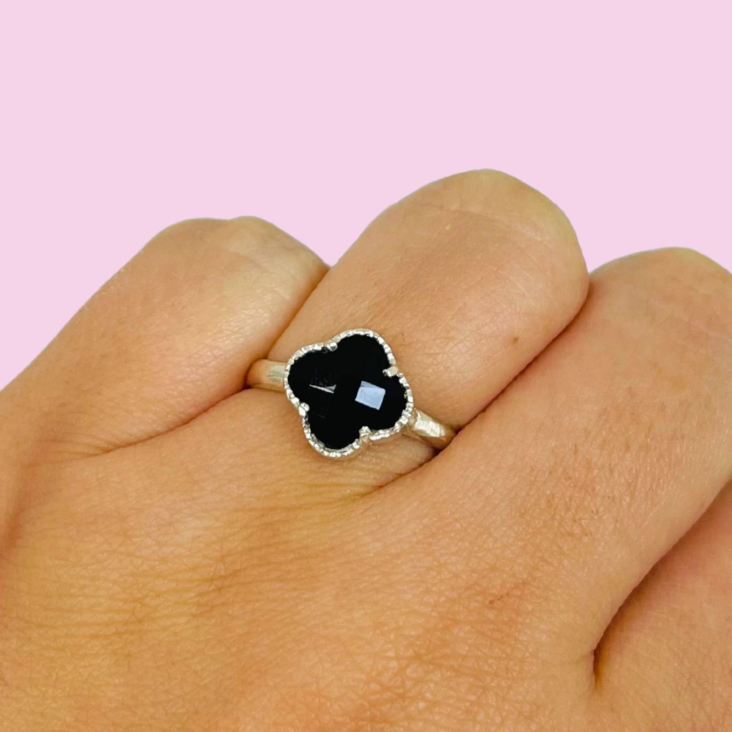 Artículo: AP 140-2Anillo Trébol Inflado Negro Plata 925
