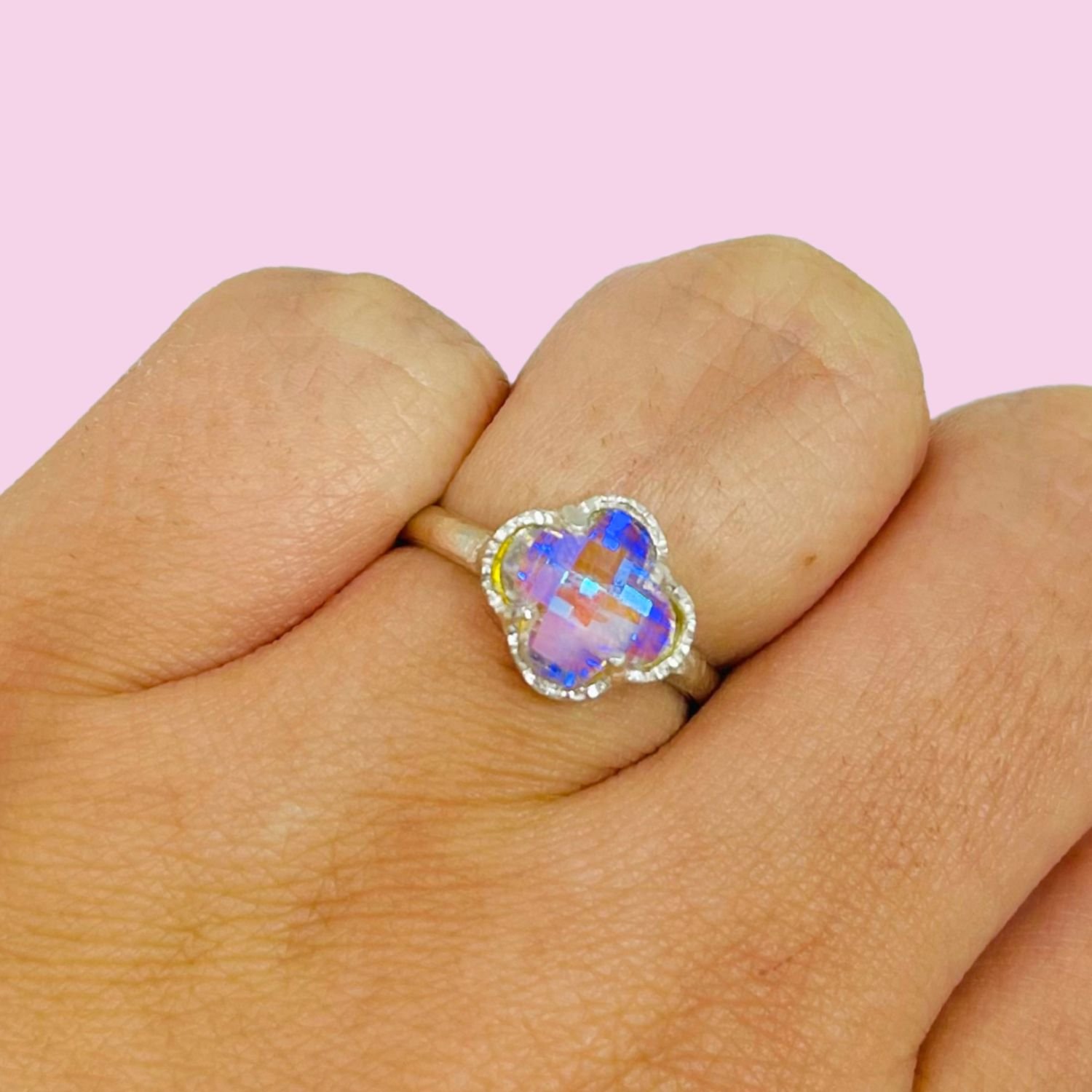 Artículo: AP 140-4Anillo Trébol Inflado Aurora Boreal Plata 925