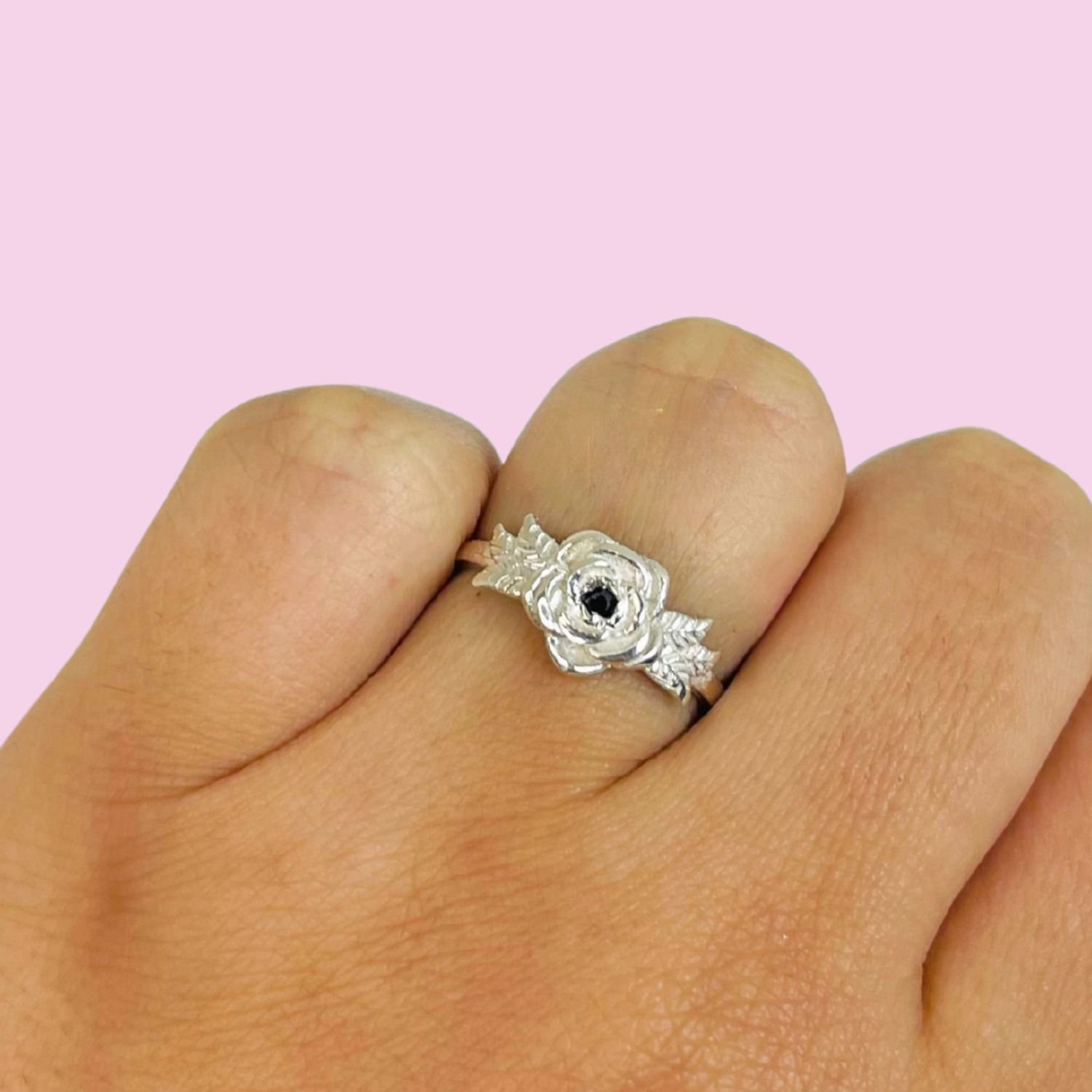 Artículo: AP 149-5Anillo Flor Romántica Negro Plata 925