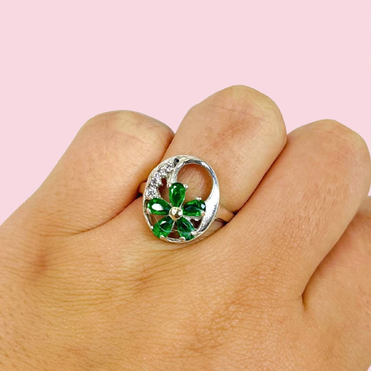Artículo: AP 228-5Anillo Flor Primavera Esmeralda Plata y Oro