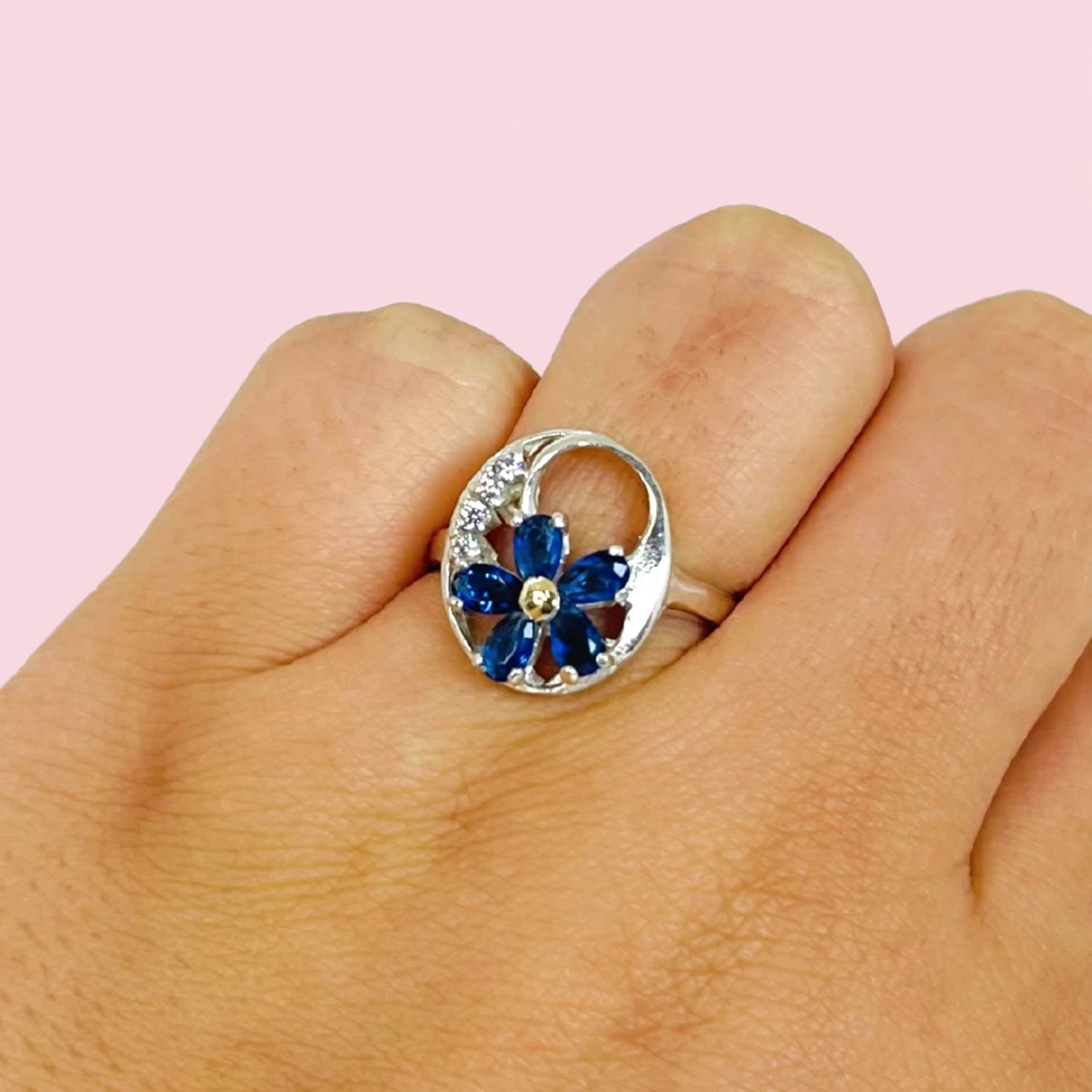 Anillo Flor Primavera Zafiro Plata y Oro