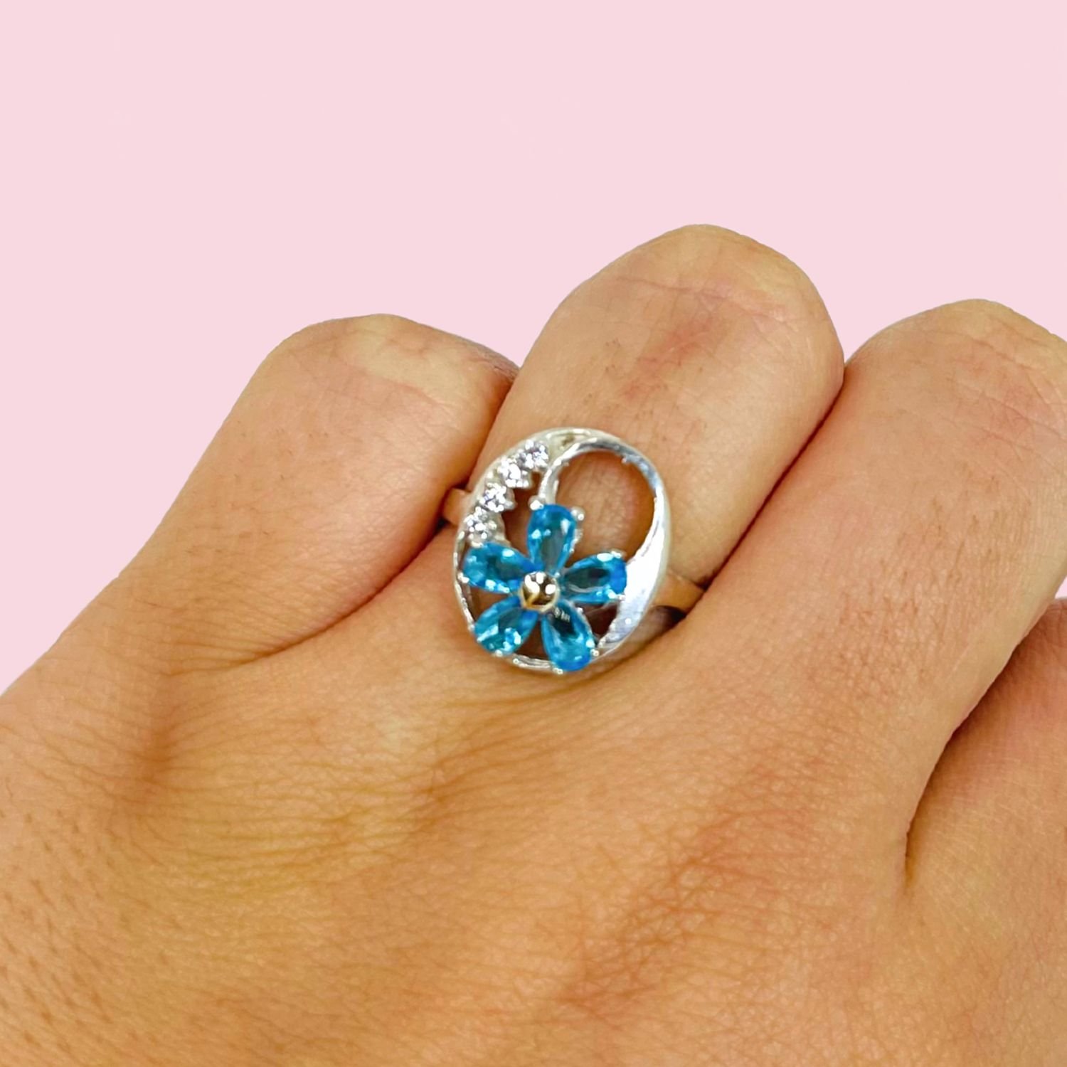 Artículo: AP 228-6Anillo Flor Primavera Agua Plata y Oro