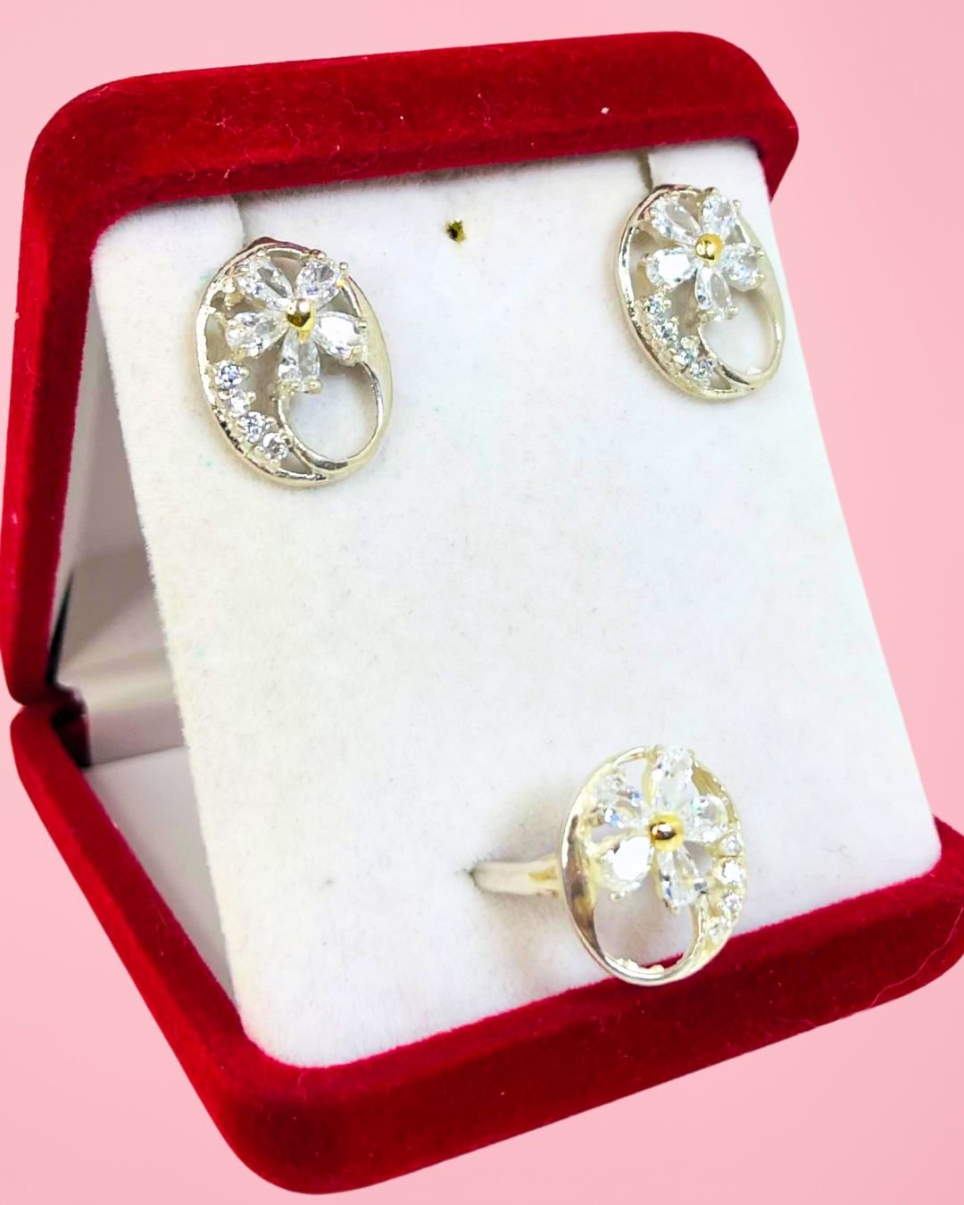 Artículo: Kit 392Conjunto aros y anillo Flor Primavera Blanco Plata 925 Y Oro 18k