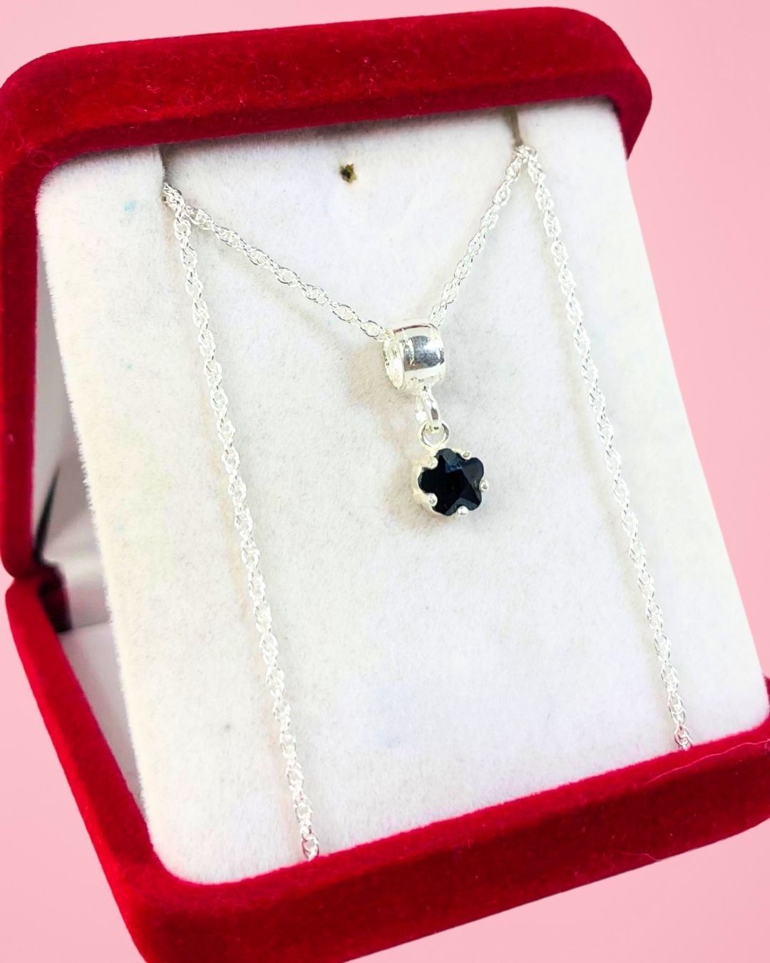 Conjunto tourbillon 25 y dije estrella con piedra engarzada Negra Plata 925