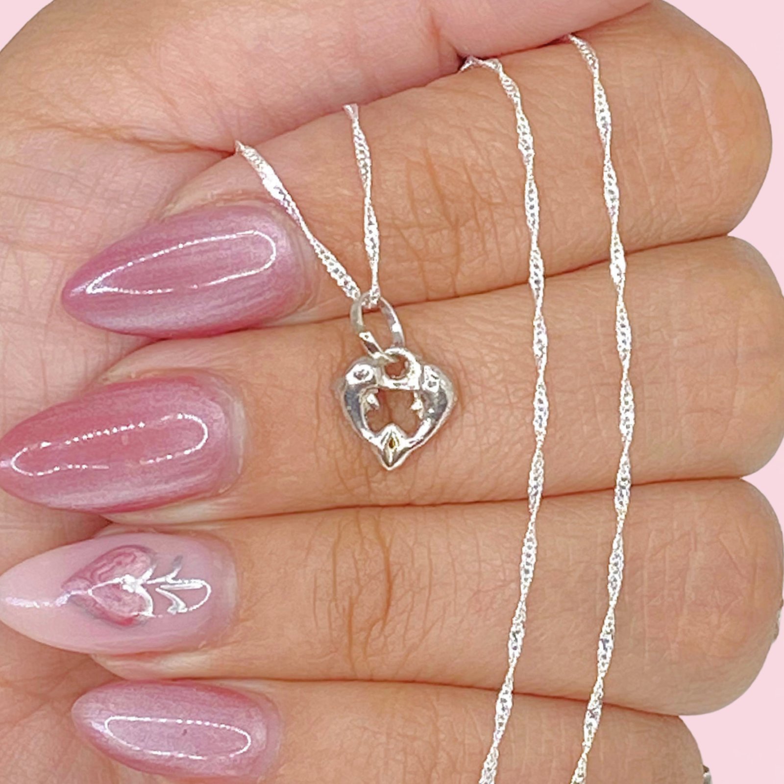 Cadena Singapur Fino Brilloso y Dije Corazon de Delfines Plata 925