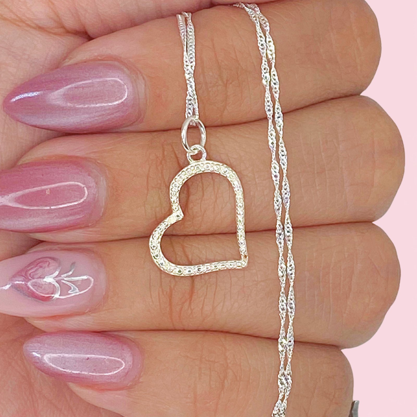 Cadena Singapur Fino Brilloso Y Dije Corazon Toon de Plata 925