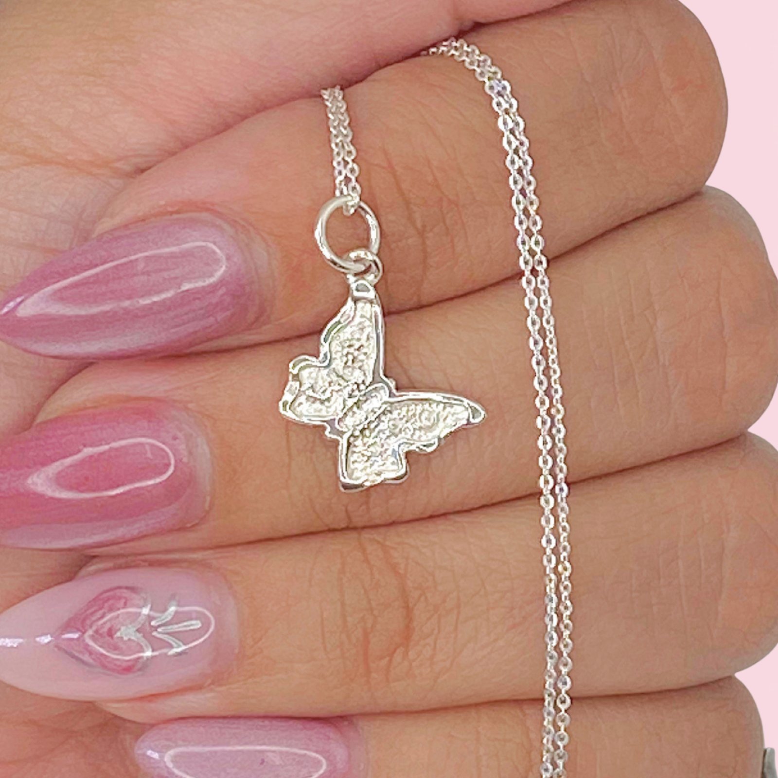 Cadena Rolo Espejado Fino y Dije Hada Mariposa de Plata 925
