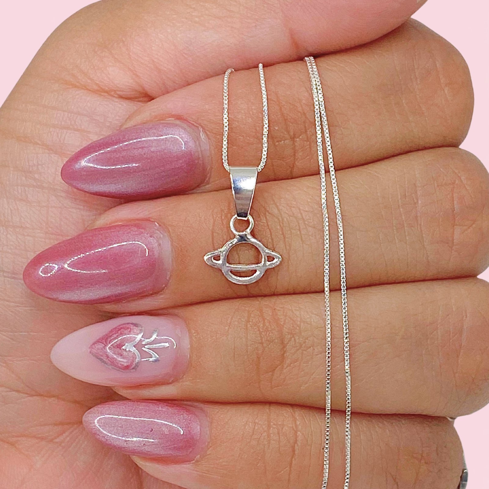 Cadena Veneziana Fina y Dije Mini Planeta Saturno Plata 925
