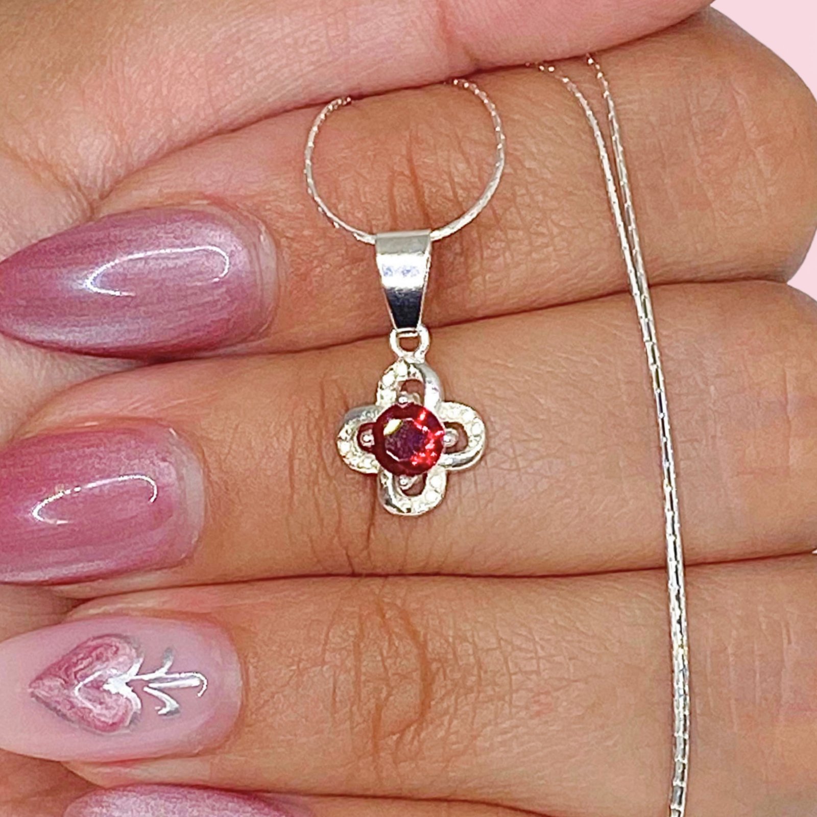 Cadena Forcet redondo y Dije Flor Mini Rubi de Plata 925