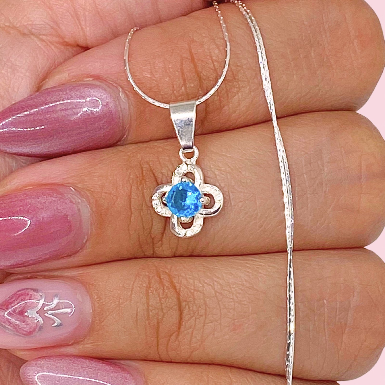 Artículo: REC 021-5Cadena Forcet redondo y Dije Flor Mini Agua Marina de Plata 925