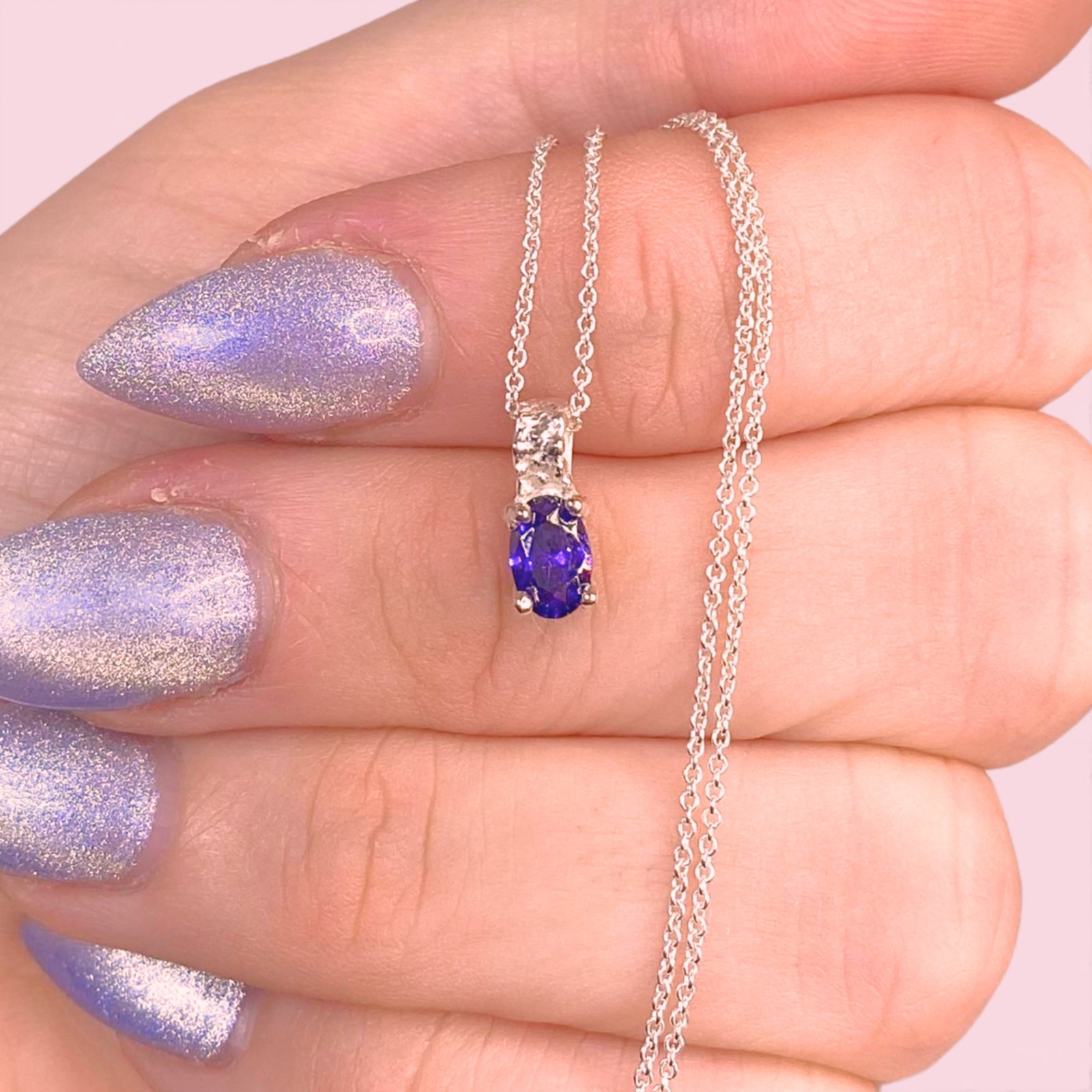 Cadena Rolito fino y Dije Mini Punto de luz Oval Violeta de Plata 925