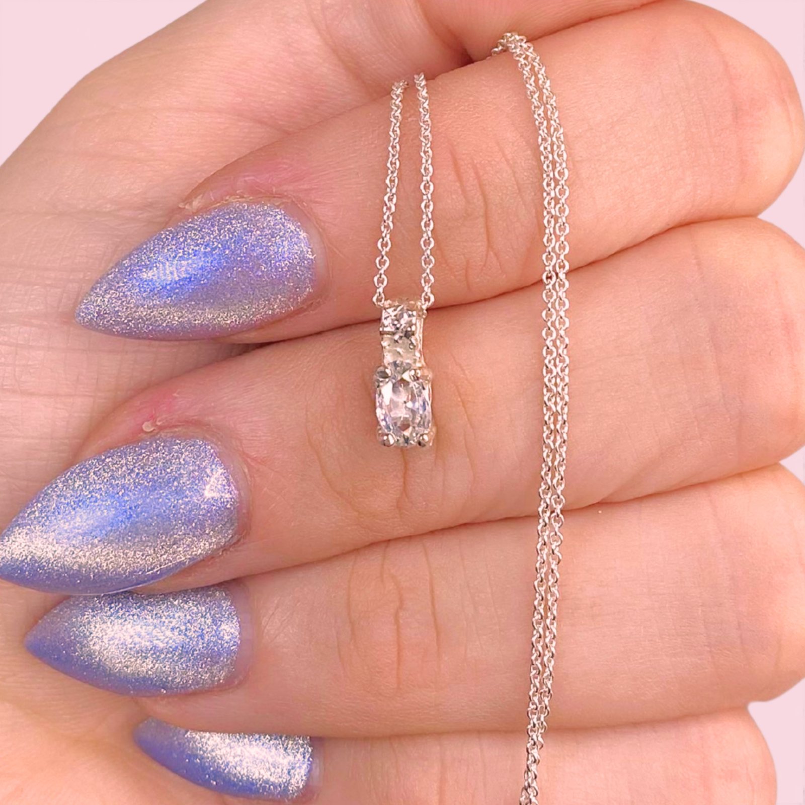 Cadena Rolito fino y Dije Mini Punto de luz Oval Blanco de Plata 925