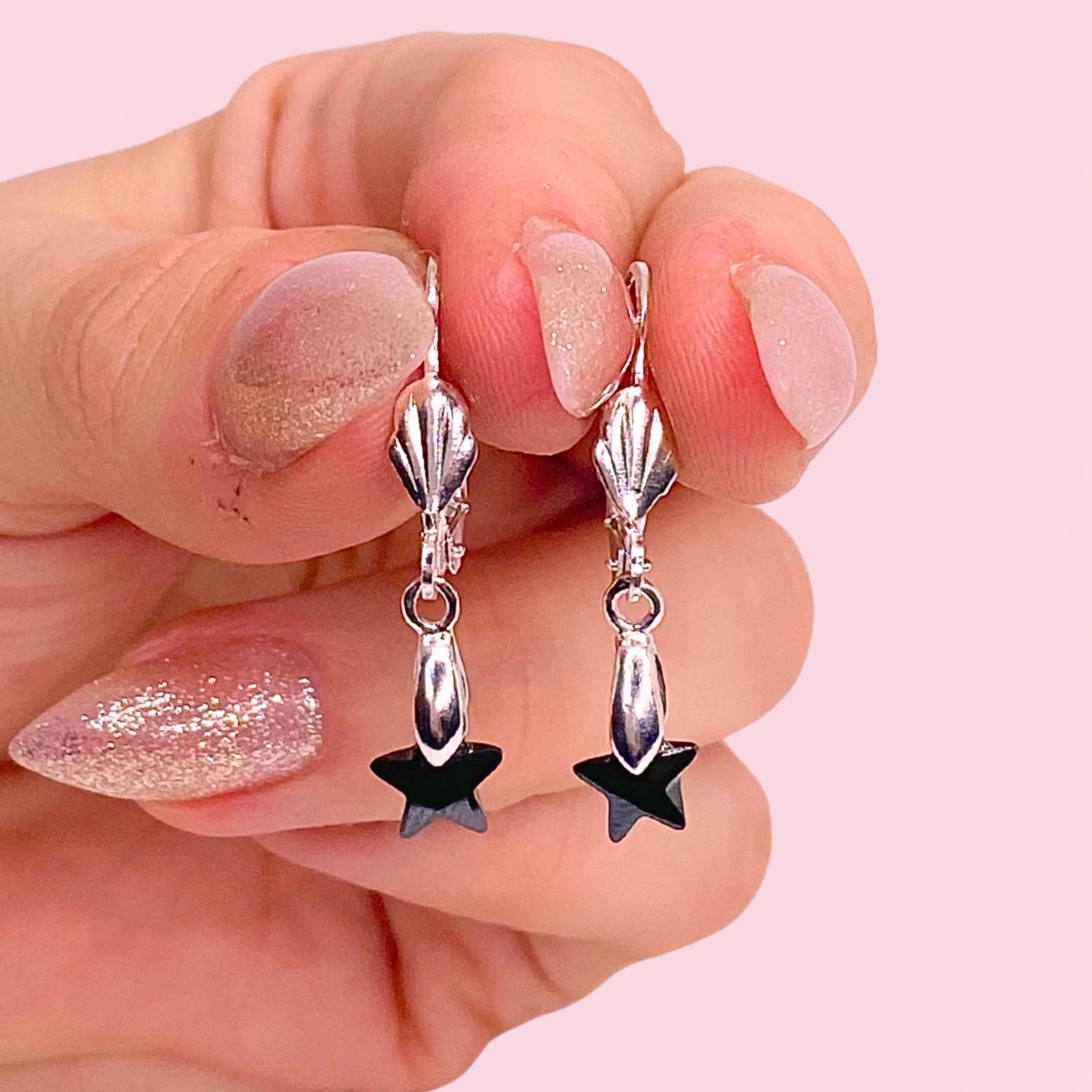 Aros con cubic Estrella 7mm Negro Laminado de Plata 925