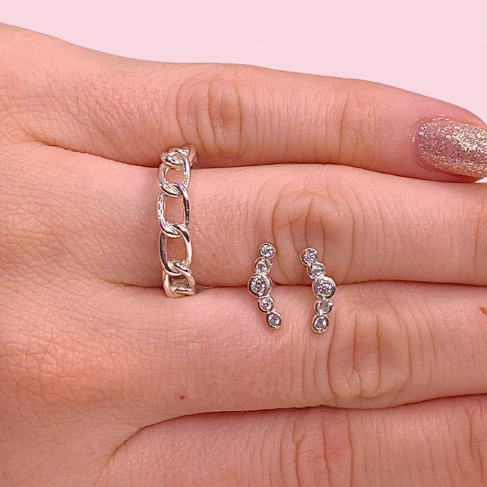 Conjunto Anillo Cadena y Aros Trepador Cubic central de Plata 925