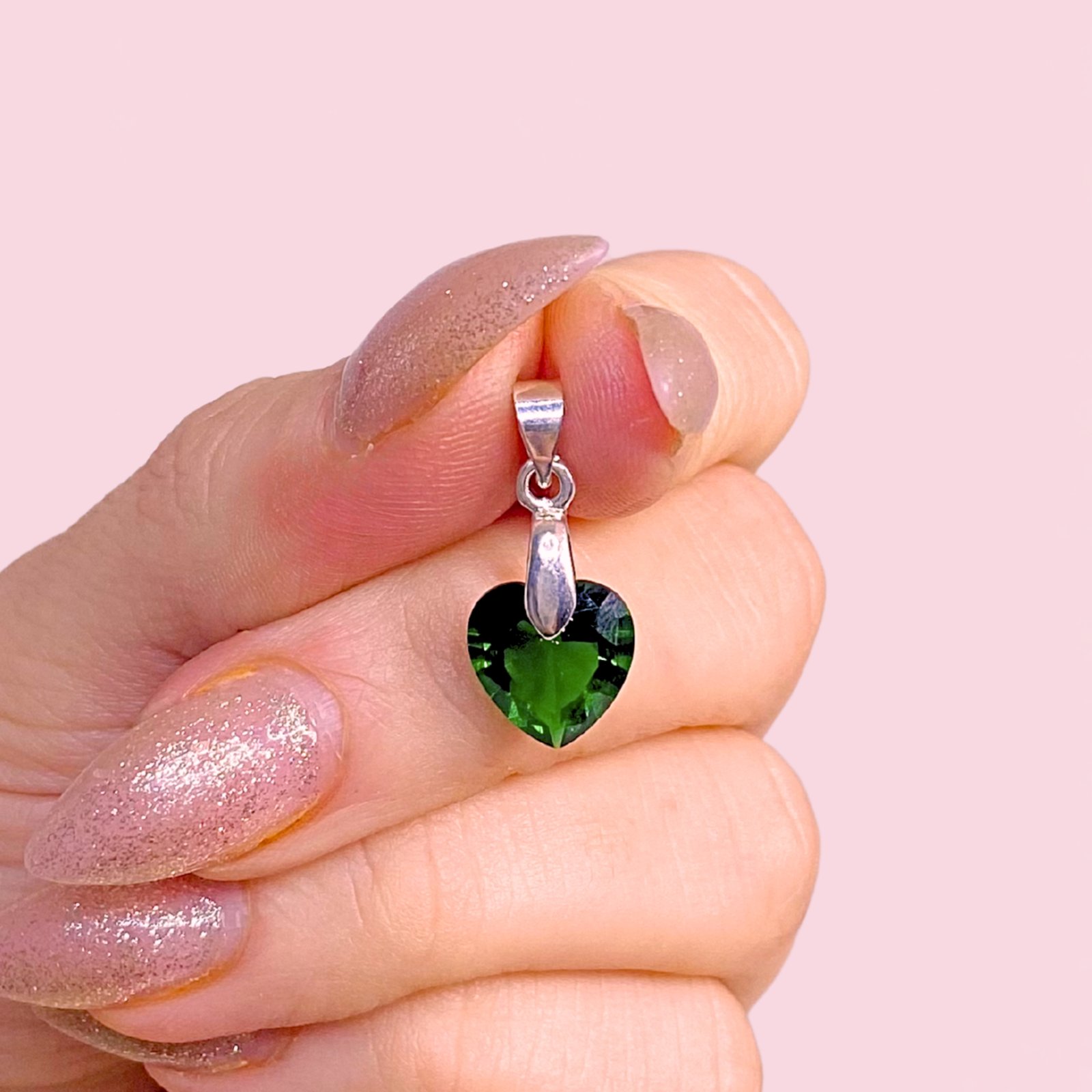Dije corazon Esmeralda grande 10mm de plata 925