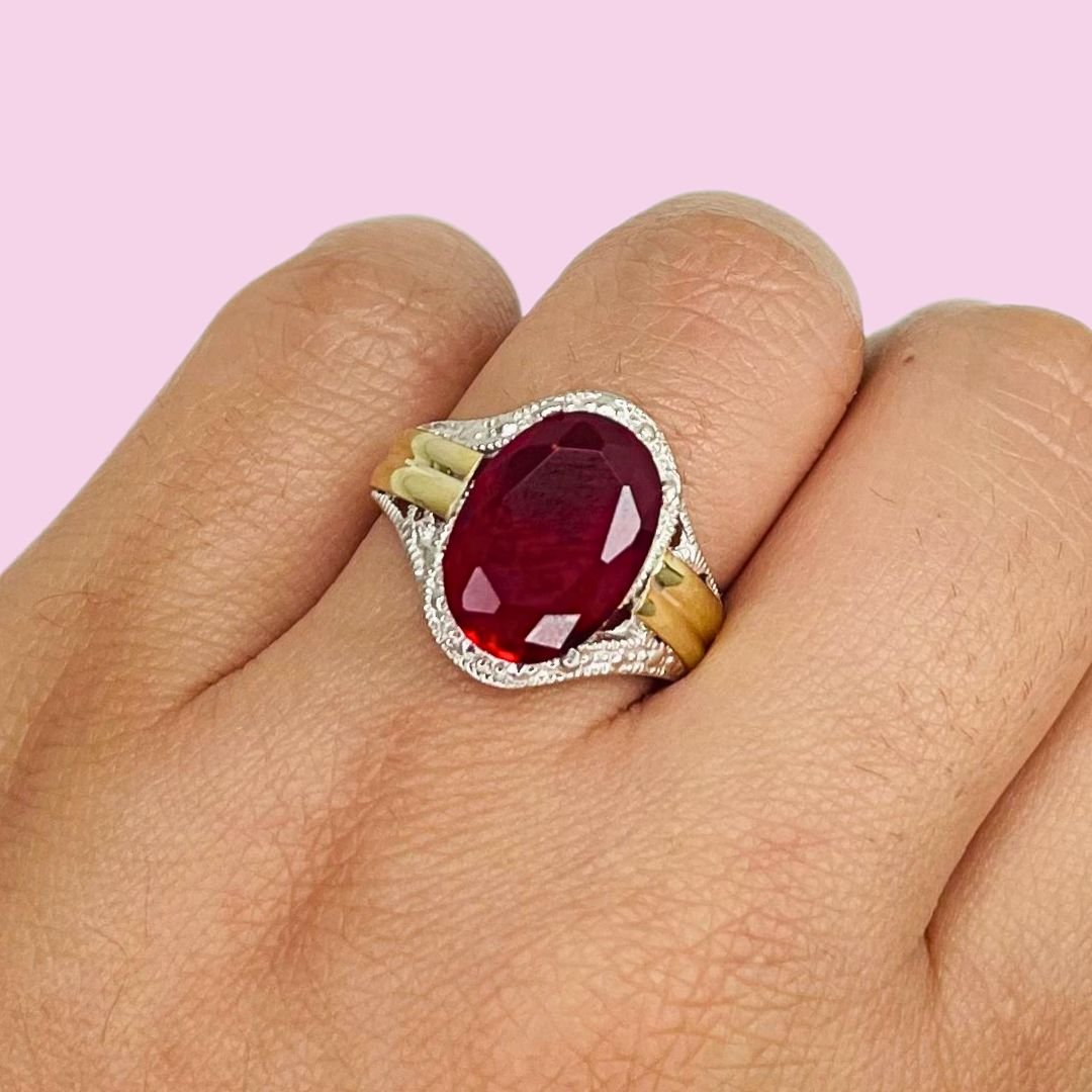 Anillo con cubic ovalado grande Rubi de Plata y Oro