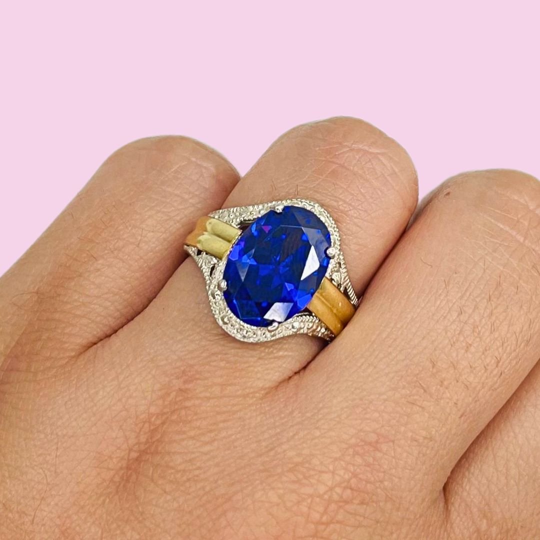 Anillo con cubic ovalado grande amatista de Plata y Oro
