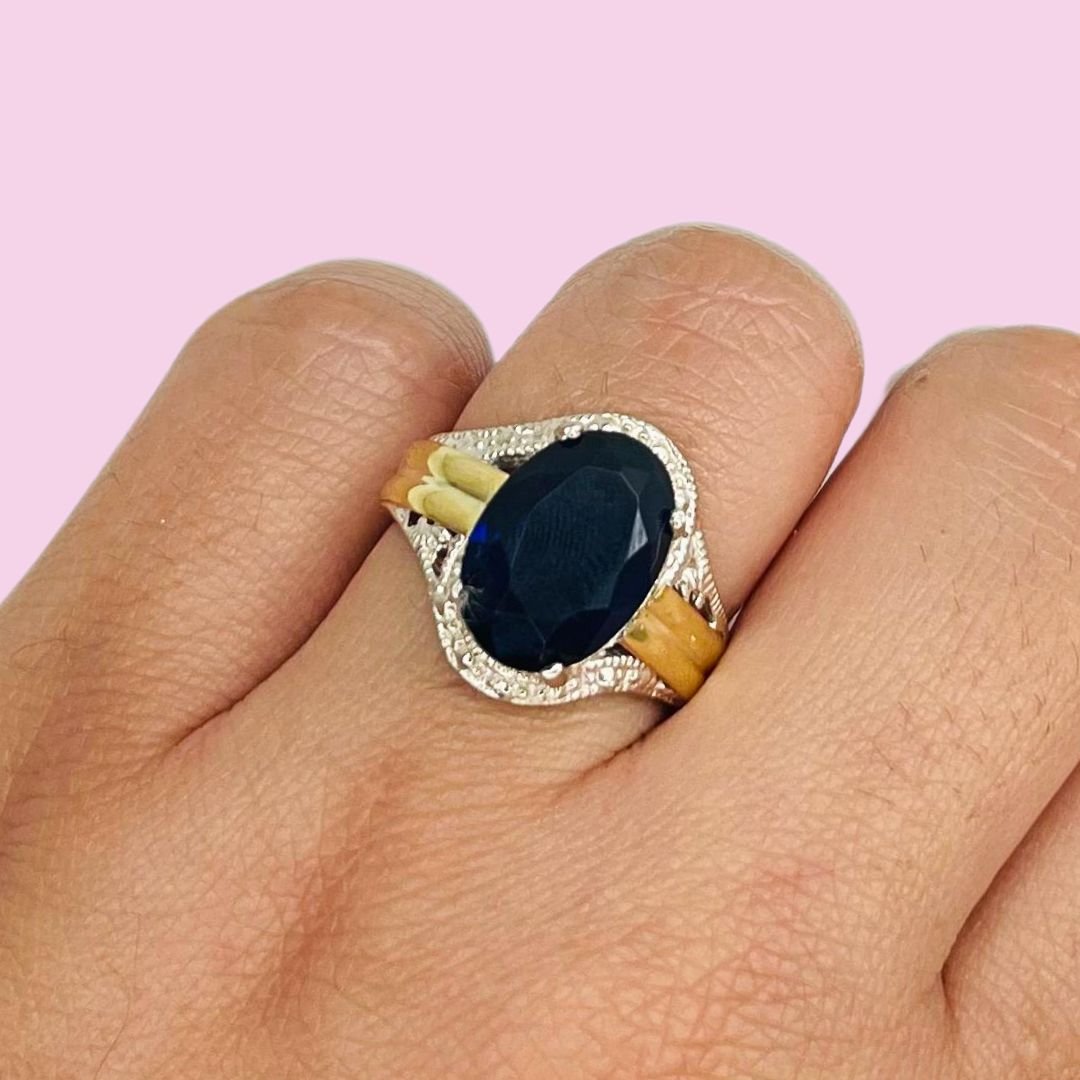 Anillo con cubic ovalado grande Zafiro Plata y oro