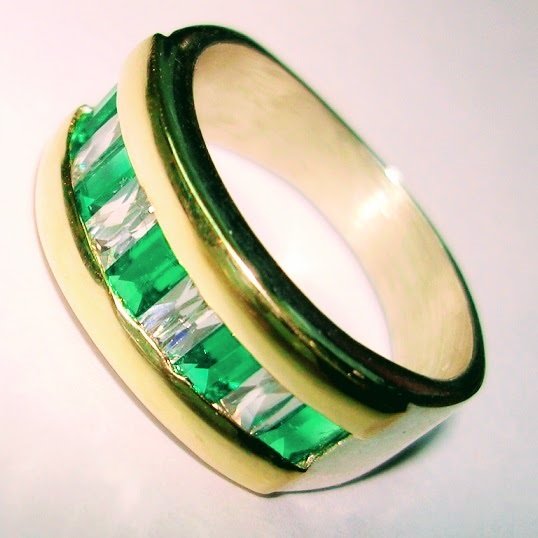 Anillo media caña baguette grande con cubic esmeralda-blanco