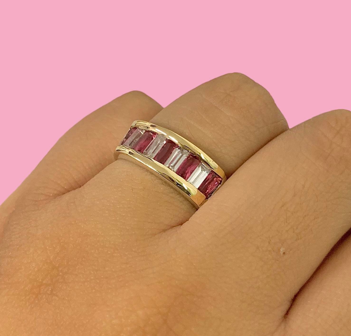 Artículo: AP 011-8Anillo media caña Baguette grande con cubic Rubi-Blanco
