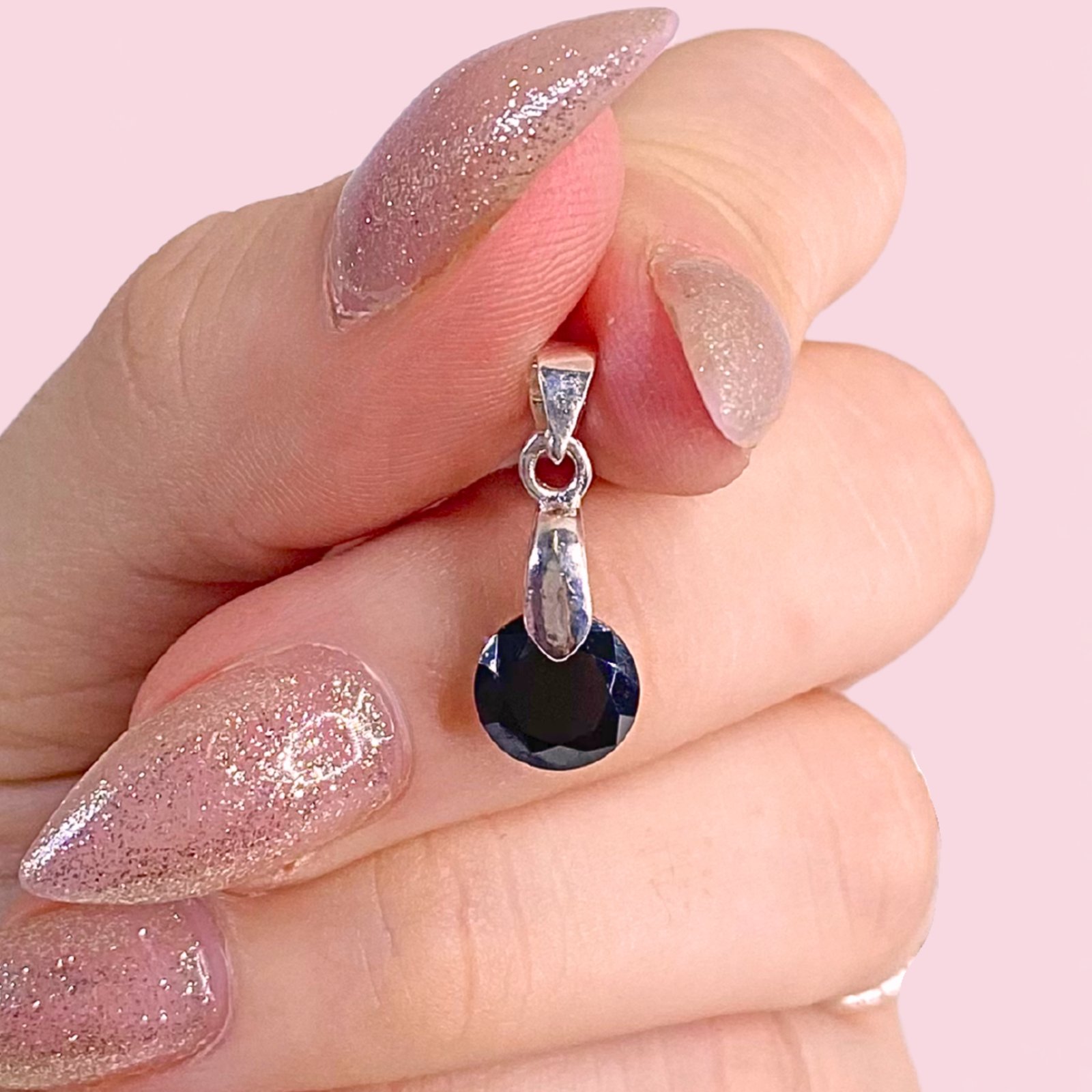 Dije redondo Negro chico 8mm Laminado de plata 925