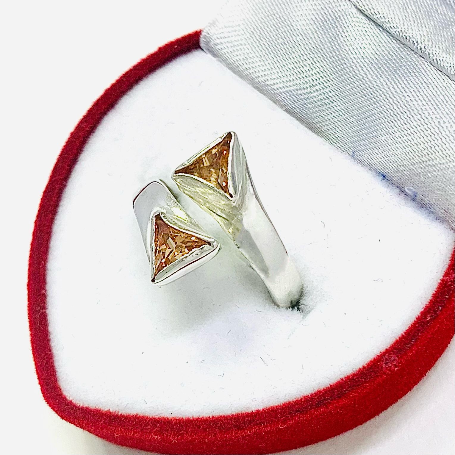 Anillo regulable doble triangulos amabar de Plata 925